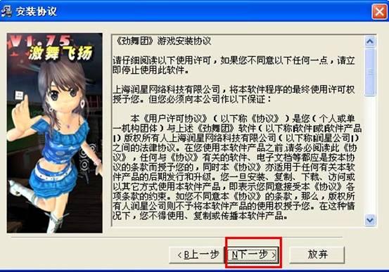4. 然后阅读《劲舞团》游戏安装协议后点击下一步进行第二步安装