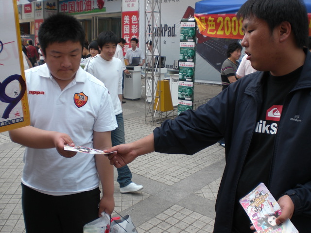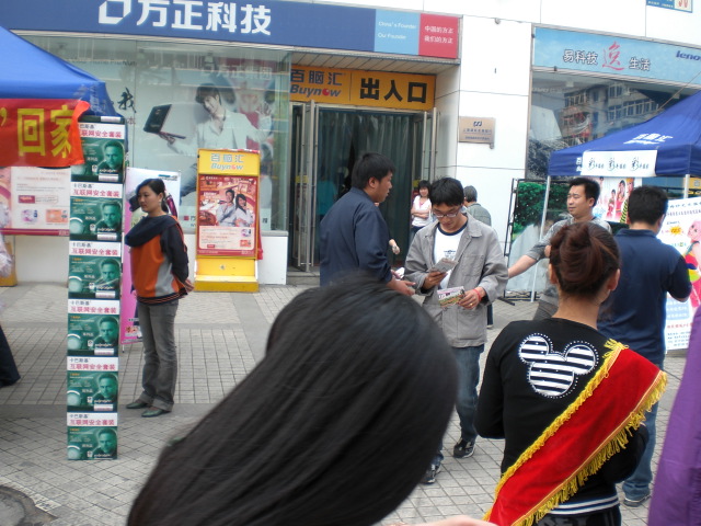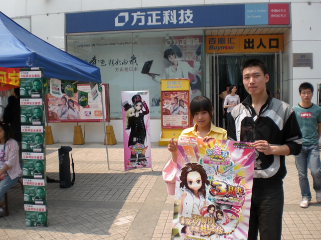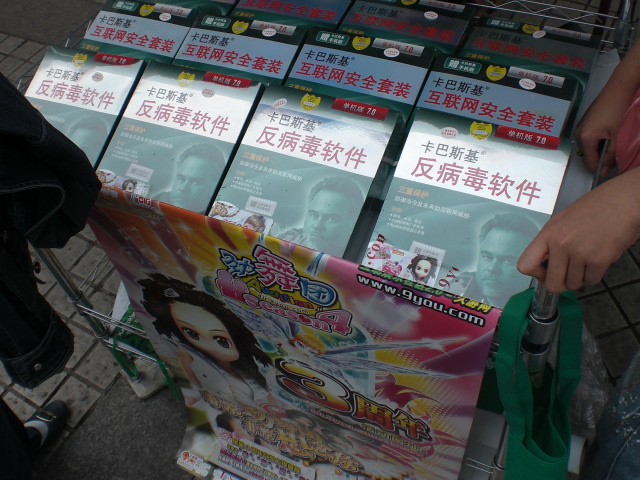 08年5月17日我们在沈阳人流密集的三好街百脑汇大厦开始了劲舞携手卡巴斯基亲情送好礼活动,凡是购买卡巴斯基08版杀毒软件的,我们均亲情赠送劲舞团牵情卡一张。