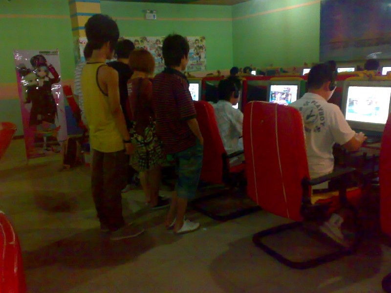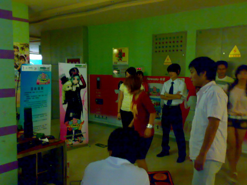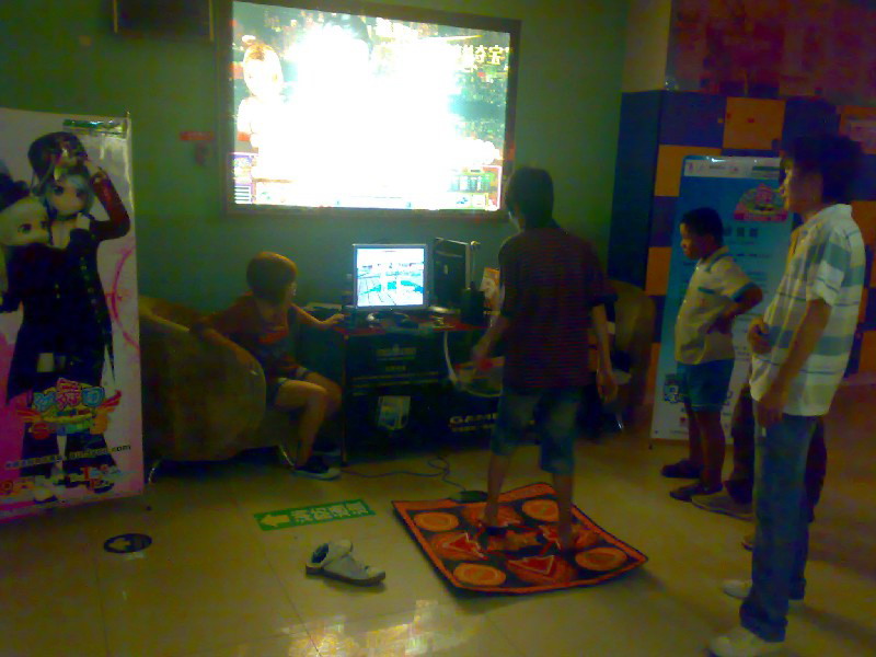 经过了8月16日一天的报名和试玩体验,在8月17日16:00网吧正式开始了比赛,第一场比赛是《超级舞者》的跳舞毯比赛,无论是帅哥还是美女,无论是会跳舞的还是没有接触过舞蹈的,参与的玩家都踊跃的站在跳舞毯上展示自己的舞蹈风姿,吸引了大量的观众,部分观看的朋友们也跃跃欲试……