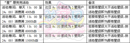 2010年9月20日0:00至2010年9月29日24:00,活动期间,单天消费金额满足一定额度(家族道具、小喇叭、全年优惠券、魔法城堡道具、劲舞人生冲刺类和时效类专区道具等特殊道具不纳入计算范围),次日9:00前即可获得对应的会员星级等级提升,同时也可获得对应的会员专区、冬己收藏卡、全年优惠券购买权和活动会员标志领取权等(活动期间,玩家登陆商城后,原有的会员等级将被活动等级替代显示),对应的特殊星级权限将于9月30日后失效,具体规则如下: